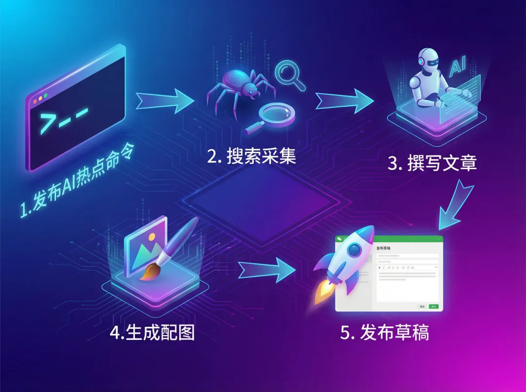 Auparavant, nous devions demander à l'IA de rechercher des informations pertinentes, puis lui demander d'écrire l'article, puis utiliser une autre IA de génération d'images pour créer des images et les insérer dans l'article, et enfin aller sur le compte officiel pour la mise en page. Mais maintenant, avec Skill, nous pouvons enchaîner complètement ces capacités et lui laisser réaliser tout le processus automatiquement.